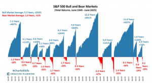 The attached chart shows the bull and bear cycles of the last seventy-five years,